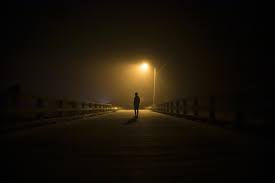 I turn and look back over my shoulder one more time. I see his dark silhouette glued to the pavement, motionless. He is still standing exactly where I left him. His tall figure is dark in the distance, a glow of the street light glimmering around him.